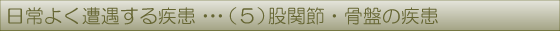 痛くて歩けない、足を引きずる(跛行)、寝返りで痛む、股関節を捻ると痛む、股関節の運動制限、股関節・大腿・膝が痛いなど。